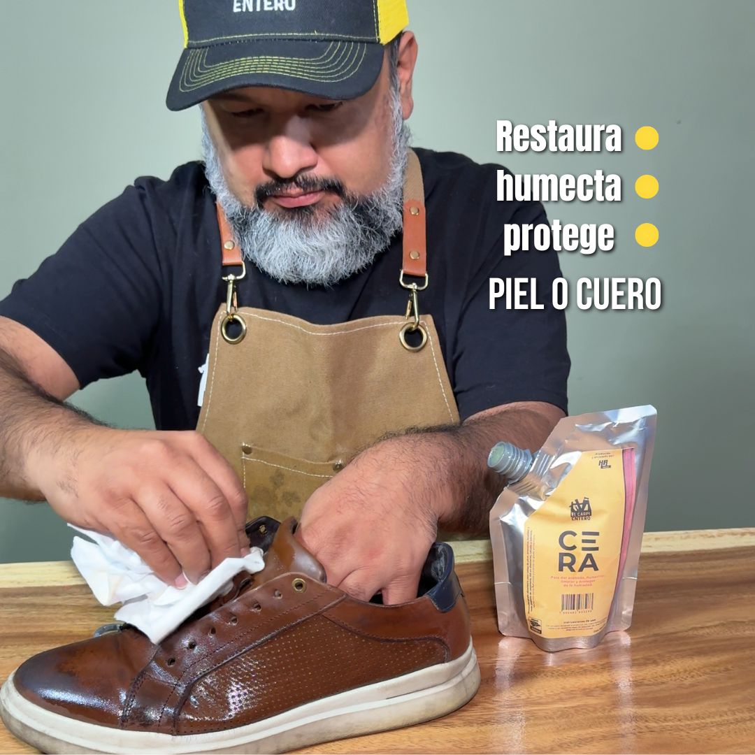Cera para madera, presentación de 250 ml en bolsa metalizada con boquilla, más práctica y amigable con el medio ambiente. Brinda protección natural de grado alimenticio, por lo que puede utilizarse en tablas para picar y presentar alimentos, artesanías y juguetes de madera; también en artículos de piel como bolsas, chamarras, cinturones y calzado, para humectar y proteger contra la humedad; así como en asientos de autos, gabinetes, herramientas, mangueras, etc.